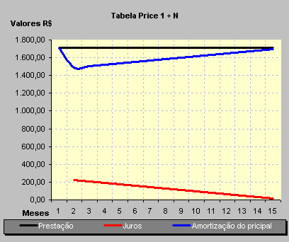 1º Pagamento no ato do Financiamento| Mês | Prestação | Juros | Amortização do Capital | Saldo Devedor |